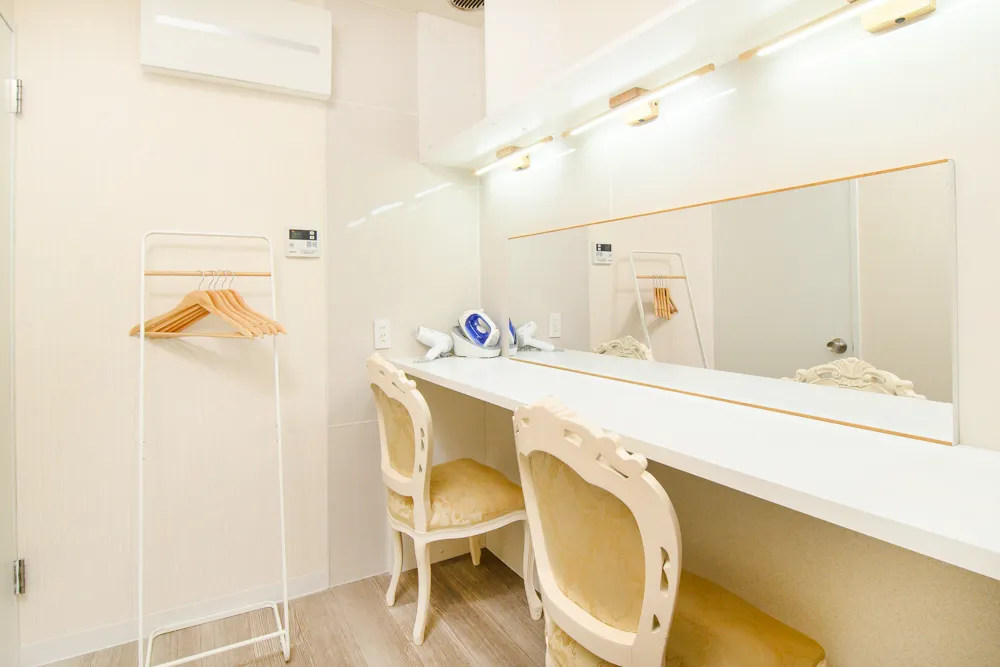 - メイクや着替え用の控室完備